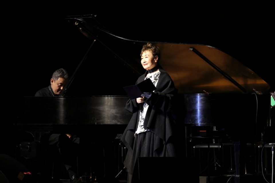 2部の冒頭はアニー・デュトワ・アルゲリッチさんからのビデオメッセージ。去年広島で行われたマルタ・アルゲリッチさんのコンサートでアニーさんが朗読した詩を、私が受け継いで日本語の朗読として、この日横山さんのピアノソロと合わせて発表することへの共感のコメントをいただきました。