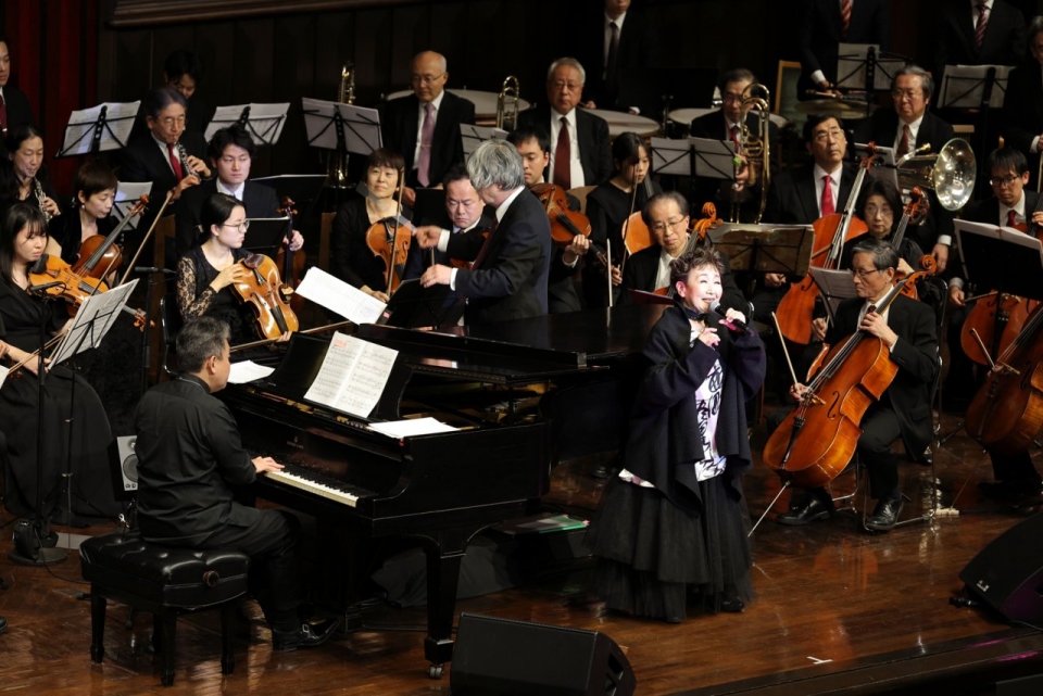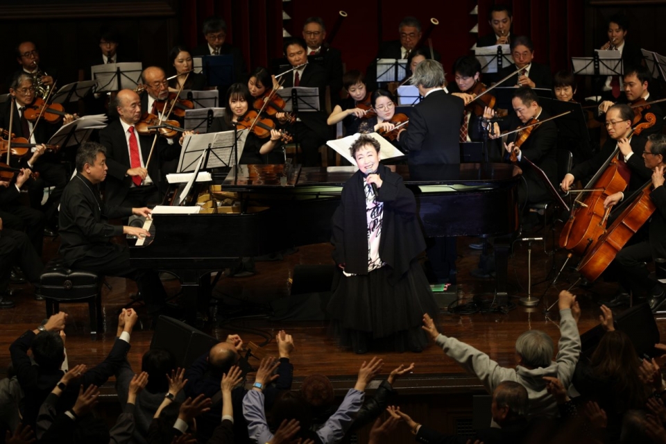 後半は横山さんのピアノソロに続き、東大同窓生オーケストラのみなさん全員で私の歌でした。