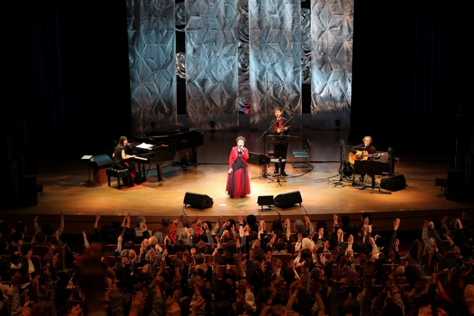 「加藤登紀子コンサートー明日への讃歌」、いつものバンドとの休憩なし2時間のコンサート。大事な歌をいっぱい歌えて、これも幸せ!