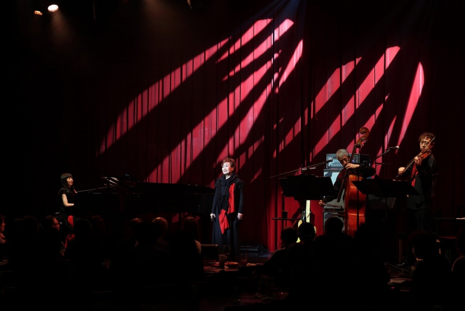 本当に60年歌ってきて、それでもはじめてのお客さんがいっぱい、って嬉しいわね。これも「紅の豚」でジーナを演じさせていただいたお陰かしら。これから、いっぱい聞いてほしい歌を歌っていきます。また聴きにきてくださいね。