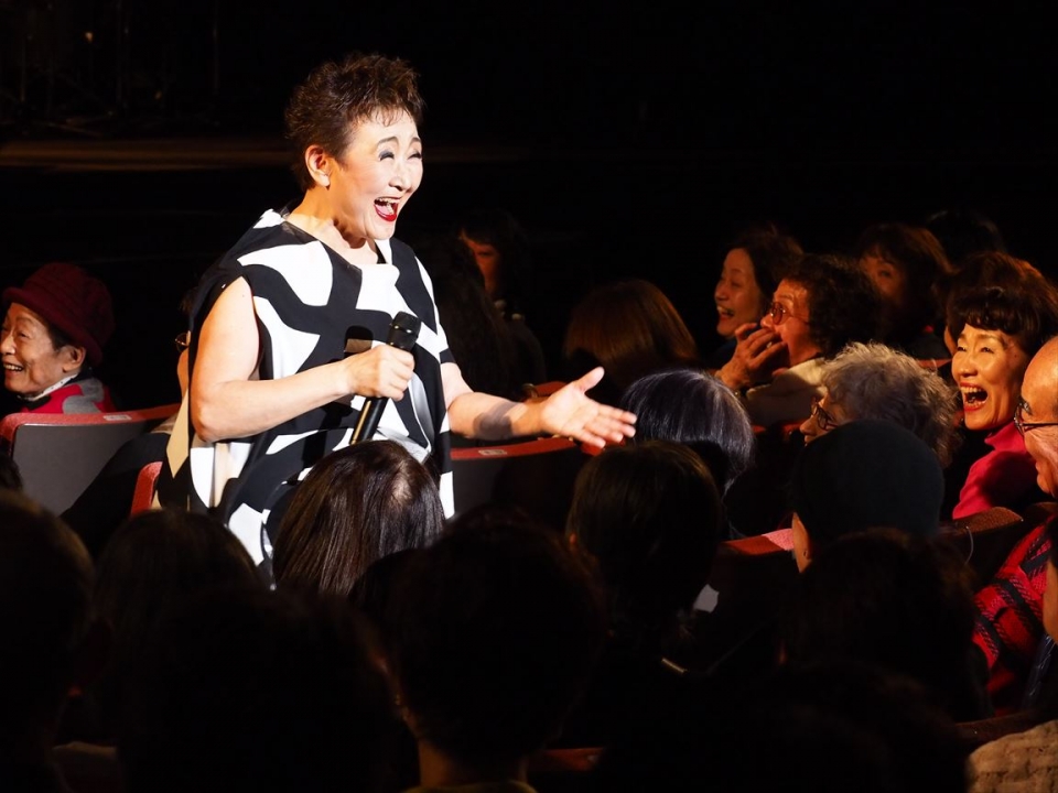 そして間近に客席を見渡すと「・・・眺めがいいわ、みんな、見ごたえがあるお顔ね!」といきなり軽くジャブ。対する人生の歴史を重ねてきた方々は客席でどっと笑っている。