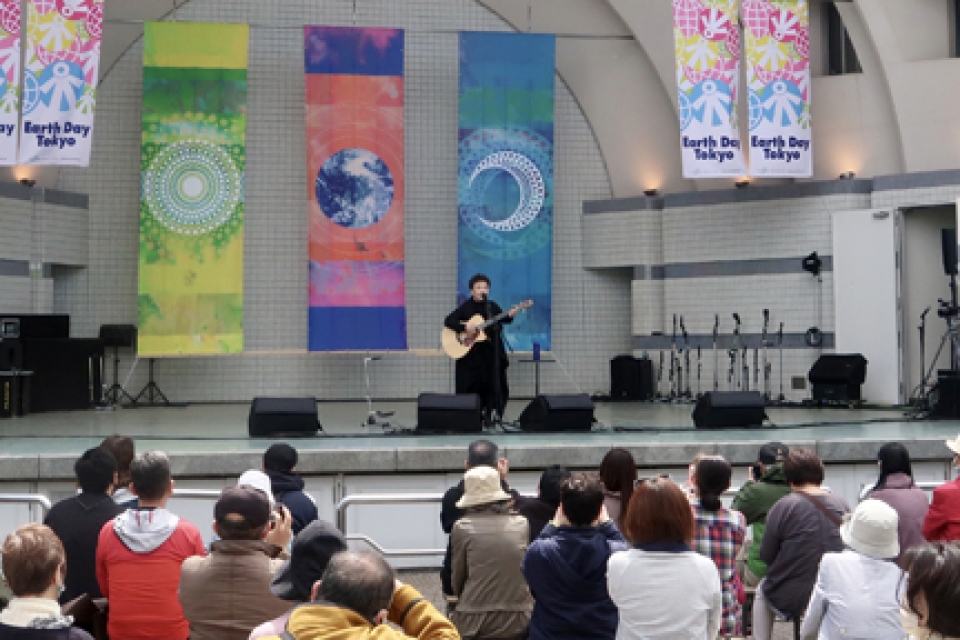 セレモニーの後は、オープニングアクトを受け持ち、ギターの弾き語りのライブ。「さくらんぼの実る頃」「百万本のバラ」「花はどこへ行った」など、今の状況への思いとともに歌い、去年作った「声をあげて泣いていいですか」を聴いていただきました。