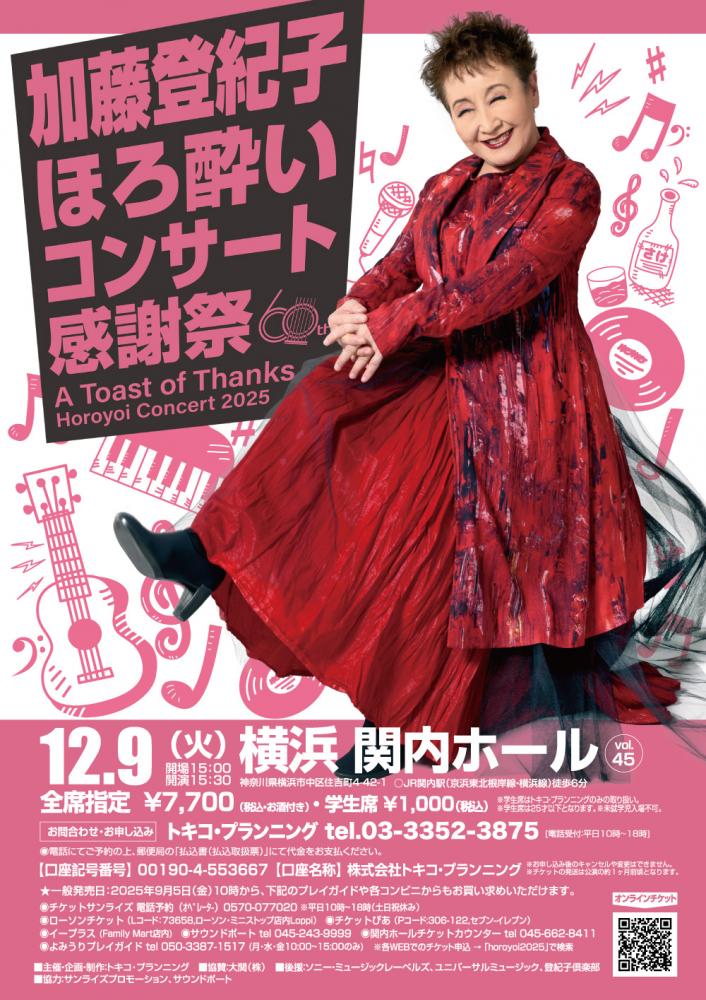 12/9(火)加藤登紀子ほろ酔いコンサート2025@横浜・関内ホール